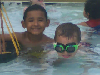 fascinated by the way they would swim by and splash at him. He was probably thinking about how he could swim with them.